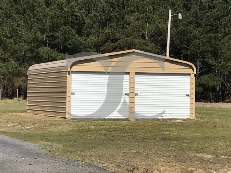 18' Wide x 21' Long x 8' High 2-Bay Regular Style with Regular Roof System (Economy).  This enclosed metal garage will accommodate 1 small cars.